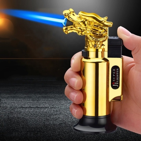 Großhandel Günstiger Blauer Feuerzeug Winddicht Jet-Flamme Nachfüllbar Butan Camping-Fackel für Grillen Zigarren Rauchen Zigaretten