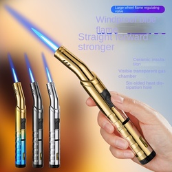 Fábrica direta azul chama isqueiro moderno reta tocha longa Windproof logotipo cozinha uso jet butano charuto tocha para brindes
